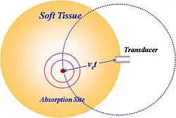 - This mechanical expansion produces an acoustic wave that propagates outward in all directions from the site of energy absorption at the velocity of sound in biologic tissue, approximately 1.5 mm per microsecond.