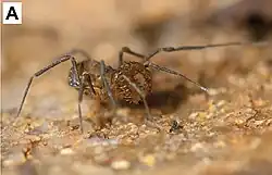 - ^ Derkarabetian, Shahan; Starrett, James; Tsurusaki, Nobuo; Ubick, Darrell; et al. (2018). "A stable phylogenomic classification of Travunioidea (Arachnida, Opiliones, Laniatores) based on sequence capture of ultraconserved elements". ZooKeys (760): 1–36. doi:10.3897/zookeys.760.24937. PMC 5986891. PMID 29872361.