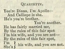 Gilbert did, in fact, conclude an agreement with Field, and the first published libretto advised: "Caution to American Pirates.—The Copyright of the Dialogue and Music of this Piece, for the United States and Canada, has been assigned to Mr. Field, of the Boston Museum, by agreement, dated 7th December, 1871."[33] If Field mounted the work, however, the production has not been traced. Gilbert's concern about American copyright pirates foreshadowed the difficulties he and Sullivan would later encounter with unauthorised "pirated" productions of H.M.S. Pinafore, The Mikado and their other popular works. In any case, the libretto was "published and circulated" in London in mid-December.[33][34]