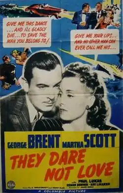 They Dare Not Love is a 1941 American romantic war drama film directed by James Whale[1] and starring George Brent, Martha Scott and Paul Lukas. Whale left the picture before the end of production; it was the last film released to credit him as director.