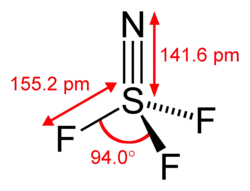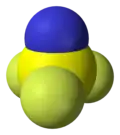 Thiazyl trifluoride is a chemical compound of nitrogen, sulfur, and fluorine, having the formula NSF3. It exists as a stable, colourless gas, and is an important precursor to other sulfur-nitrogen-fluorine compounds.[2] It has tetrahedral molecular geometry around the sulfur atom, and is regarded to be a prime example of a compound that has a sulfur-nitrogen triple bond.[3]