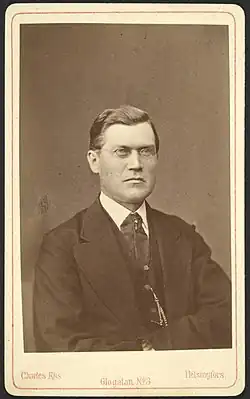 Saelan's other field was botany, where he was also one of the most important Finnish researchers of his time.[5] He published more than 100 papers on the floristics (plant geography) of Finland.[6] He was an avid botanist and spent much of his time in the Lapinlahti hospital park.[7][8] Saelan, at the time a young graduate, collaborated with William Nylander to publish Herbarium Musei fennici in 1859. This was a catalogue of the specimens in the herbarium of the botanical museum. Nylander wrote about the cryptogams, while Saelen dealt with the phanerogams.[9] This catalogue listed 1,025 species of vascular plants, 333 mosses, 316 lichens, 71 algae, and 375 fungi.[6]