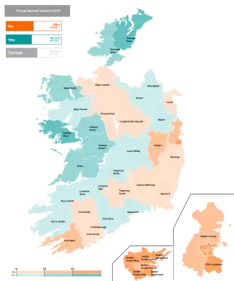 | Donegal West | 30,850 | 50.2% | 8,682 | 6,207 | 58.3% | 41.7% |