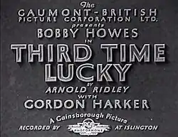 Third Time Lucky is a 1931 British comedy film directed by Walter Forde and starring Bobby Howes, Dorothy Boyd and Gordon Harker. It was made at Islington Studios[1] and based on the 1929 West End play of the same title by Arnold Ridley. The film's sets were designed by art director Walter Murton.