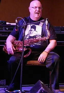 As part of an all-North American line-up of musicians at the sessions, other participants included bassist Willie Weeks, drummer Alvin Taylor, keyboard players Richard Tee and David Foster, and jazz percussionist Emil Richards.[56] Harrison's regular associates Gary Wright and Billy Preston also contributed, on keyboards,[57] the latter in between his commitments to the Rolling Stones' concurrent European tour.[12] Taylor had recently played on the album 2nd Resurrection, co-produced by Preston for the Chicago soul group the Stairsteps,[7] one of several acts signed to Dark Horse Records since 1974.[58] Together with the Taylor–Weeks rhythm section,[56] Scott's presence on Thirty Three & 1⁄3 gave the album a more overt American soul sound compared with Harrison's self-produced Extra Texture.[59] Author Michael Frontani describes Taylor and Weeks as one of Harrison's most effective rhythm sections.[60] Taylor recalled that he recorded his drum parts live to tape on the basic tracks, without any overdubs, and the aesthetic during the sessions was one of "human feeling".[61][nb 3]