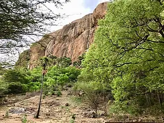 The western edge of the Thiruparankundram hill is home to ancient Jain beds with Tamil Brahmi inscriptions dated between 2nd century BCE and 2nd century CE. Uphill, the hills has several other Jain bas-reliefs of Parsvanatha and Mahavira with inscriptions, dated to about the 8th to 9th century. The traditional name of these Jain beds is "Pancha Pandava" beds, reflecting the local historic belief that the beds were one of the places where the five brothers of the Mahabharata fame rested. The southern side of the hill has a natural spring called Saraswati Tirtha as well as another Thirupparankundram rock-cut cave temple that some have proposed was an ancient Jain temple converted into Shaiva temple in the 7th century and expanded in the 13th century.[2] Some Hindu pilgrims circumambulate around the entire Thiruparankundram hill given the many religious monuments and history here.[1]