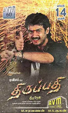 Thirupathi is a 2006 Indian Tamil-language masala film written and directed by Perarasu and produced by AVM Productions. The film stars Ajith Kumar and Sadha in the lead roles, while Arun Pandian, Riyaz Khan, Sampath Raj in supporting roles.
