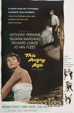 This Angry Age (also known as The Sea Wall, Barrage contre le Pacifique, and La diga sul Pacifico) is a 1957 Italian-American drama film directed by René Clément, produced by Dino De Laurentiis, and starring Anthony Perkins and Silvana Mangano. It is an adaptation of Marguerite Duras' 1950 novel The Sea Wall. The original novel was adapted again in 2008 by Rithy Panh as The Sea Wall, starring Isabelle Huppert.