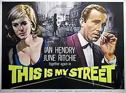 This Is My Street is a 1964 British black and white kitchen sink drama film directed by Sidney Hayers and starring June Ritchie, Ian Hendry, Avice Landone, Annette Andre, Mike Pratt, Philippa Gail and John Hurt.[1] The screenplay was by Bill MacIlwraith, based on the 1962 novel of the same name by Nan Maynard.