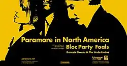 - ^ "PARAMORE ANNOUNCES LONG AWAITED NORTH AMERICA ARENA TOUR WITH SUPPORT FROM FOALS & BLOC PARTY + MORE". Live Nation. 4 November 2022. Retrieved 2022-11-04.