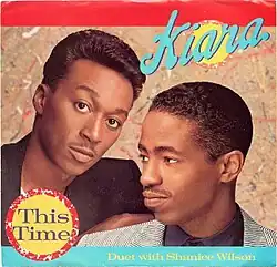"This Time" is a duet song performed by Detroit R&B duo Kiara and singer Shanice Wilson. It became a #2 hit on the R&B charts, only missing the top position to New Edition's "Can You Stand the Rain". A music video was filmed.