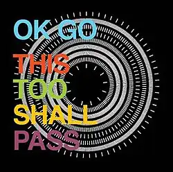 "This Too Shall Pass" is a song by American rock band OK Go. It was released as the second single from their third studio album, Of the Blue Colour of the Sky, in January 2010. The band took the unorthodox route of creating two official music videos for the song, both of which premiered on YouTube. The first features a live performance of the song in collaboration with the University of Notre Dame Marching Band. The second features a giant Rube Goldberg machine, constructed to operate in time with the song. The popularity of the second music video of the song has been compared to that of the band's video for "Here It Goes Again", helping to boost live performances and single song sales for the group but not significantly improving sales of the Colour album. Difficulties with EMI, their corporate label, in marketing and distribution of the videos led the band to form their own independent label shortly after the videos' releases.
