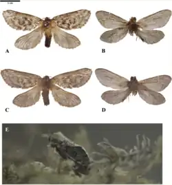 - ^ Wang, Zhengyang; Zhuang, Hailing; Wang, Min; Pierce, Naomi E. (2019). "Thitarodes shambalaensis sp. nov. (Lepidoptera, Hepialidae): a new host of the caterpillar fungus Ophiocordyceps sinensis supported by genome-wide SNP data". ZooKeys (885): 89–113. doi:10.3897/zookeys.885.34638. PMC 6848235. PMID 31736619.