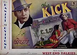 Thokar also called The Kick is a 1939 Indian Hindi-Urdu film directed by A. R. Kardar. Produced by Chandulal Shah for his production banner Ranjit Movietone, it has music by Gyan Dutt.[1] The story writer was M. Sadiq, with cinematography by Gordhanbhi Patel.[2] The cast included Kumar, Ishwarlal, Madhuri, Yakub, Noor Mohammed Charlie, Ram Marathe, Waheedan Bai and Dixit.[3] The story involves a blind villager winning a lottery but he eventually realises that money can not bring happiness.[4]