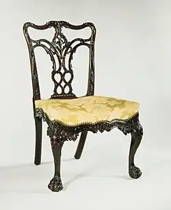 - Hairy-paw-foot easy chair (1770–71, mahogany), Philadelphia Museum of Art.[27] Set a world auction record for a piece of furniture when it was sold at Sotheby's New York in 1987 for $2,750,000.[28] Donated to the Philadelphia Museum of Art in 2002.[29]
