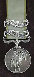 He received two medals: the Crimean War Medal, with clasps for Alma, Balaclava, Inkerman and Sevastopol, and the Turkish Crimea Medal.[1][6] In 1858 he was promoted to Corporal. He was discharged from the army in 23 December 1858 in Brighton at his own request, possibly because the regiment had been put in readiness to embark for India at the start of the Indian Mutiny.[6][10] He left with two good conduct badges. He attended the 21st Anniversary Reunion dinner at Alexandra Palace on 25 October 1875.[12] In 1877 he was a member of the Balaclava Commemoration Society.[6]