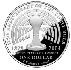 The Thomas Alva Edison silver dollar is a commemorative silver dollar issued by the United States Mint in 2004.[1] It portrays American inventor Thomas Edison and was issued to commemorate the 125th anniversary of the invention of the light bulb by Edison.