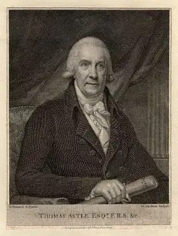 - ^ "Astle, Thomas: certificate of election to the Royal Society". Royal Society. Retrieved 8 December 2022.
