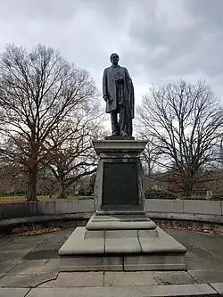 Thirteen years after his death, the 1911 Encyclopædia Britannica said of Bayard that "his tall dignified person, unfailing courtesy, and polished, if somewhat deliberate, eloquence made him a man of mark in all the best circles. He was considered indeed by many Americans to have become too partial to English ways; and, for the expression of some criticisms regarded as unfavorable to his own countrymen, the House of Representatives went so far as to pass ... a vote of censure on him. The value of Bayard's diplomacy was, however, fully recognized in the United Kingdom where he worthily upheld the traditions of a famous line of American ministers."[5] In 1929, the Dictionary of American Biography described Bayard, as a Senator, as being "remembered rather for his opposition to Republican policies ... than for constructive legislation of the successful solution of great problems", and said that he had "the convictions of an earlier day ... and was never inclined, either politically or socially, to seek popularity with the country at large."[152] Charles C. Tansill, a conservative historian, found much to praise in Bayard; he published a volume on Bayard's diplomatic career in 1940 and another about his congressional career in 1946, the only full-length biographies to appear since Bayard's death. Later historians took a dimmer view of Bayard's diplomatic career; in a 1989 book, Henry E. Mattox numbered Bayard among the Gilded Age foreign service officers who were "demonstrably incompetent."[153]