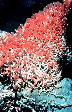 While Russian scientists had long been at work explicating possible abiogenic origins of petroleum,[45] the Cold War blocked knowledge of their publications until the 1990s. Thus, Thomas Gold was credited with the idea in the United States when current events prompted him to submit an opinion piece to the Wall Street Journal in June 1977 titled, "Rethinking the origins of oil and gas."[46] Concern about gasoline shortages that began in 1973 were still troubling the economy. A striking discovery in the deep-sea just four months earlier (February 1977) was another impetus: Exploration and photography of a deep-sea hydrothermal vent showed a dense amount of life living on chemical energy. Stationary organisms depending on vent outflows included albino clams and tube worms larger than ever seen in surface marine ecosystems. Most astonishing was that such ecosystems were based on microbial life living entirely on chemosynthetic rather than photosynthetic ways of capturing energy and building living cells.[47]
