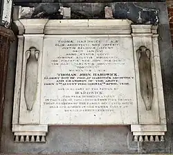 Thomas Hardwick worked with the architect John Shaw Sr. (1776–1832) whilst surveying St James's Church, Piccadilly and St Barthlomew's Hospital in Smithfield; later his son Philip Hardwick married a daughter of John Shaw. Another son, John Hardwick (1790–1875), was a stipendiary magistrate at Great Marlborough Street magistrates' court, London, and a friend of Charles Dickens.