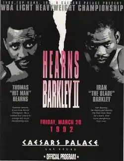- ^ "Thomas Hearns vs. Iran Barkley (2nd meeting)". boxrec.com. BoxRec. Retrieved 28 August 2024.