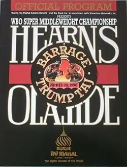 Thomas Hearns vs. Michael Olajide, billed as The Barrage at Trump Taj, was a professional boxing match contested on April 28, 1990 for the WBO super middleweight title.[1]