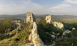 Andrew III of Hungary died on 14 January 1301, leaving no male heirs. He was the last male member of the Árpád dynasty. Thomas Hont-Pázmány was present at his deathbed, alongside others lords of the royal court, including Dominic Rátót, Roland Borsa and Paul Szécs. He appeared as a witness in the charter of Queen Agnes, who handed over the royal castle of Óbuda on the next day, 15 January.[24] Thomas was referred to as ispán of Nyitra and Bars counties in the document.[25] On hearing Andrew's death, Charles of Anjou hurried to Esztergom where Gregory Bicskei crowned him king in the spring of 1301. However, majority of the prelates and barons, including John and Thomas-Hont-Pázmány did not recognize his legitimacy. Another pretender, Wenceslaus of Bohemia was crowned king by John Hont-Pázmány in August 1301. Thomas was referred to as "baron" of Wenceslaus in 1303.[26] He did not play a role in the subsequent events of the era called Interregnum. He died sometime after 1303. In the first decade of the 14th century, Matthew Csák rapidly extended his influence over the whole Northwest Hungary, including the Hont-Pázmány lands. The oligarch also captured the castle of Gímes, during or after Thomas' lifetime.[27]