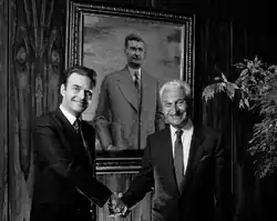 Baťa was invested in 1972 as a Companion of the Order of Canada,[3] Canada's highest civilian award, and he received the Order of Tomáš Garrigue Masaryk in the Czech Republic. He was particularly proud of his association with the Hastings and Prince Edward Regiment. He joined the regiment during the Second World War, and he served as a captain in the Canadian Reserve Army and as honorary colonel from 1999 to 2007. He was frequently seen in the field visiting with its troops. In 2007, he received the FIRST Award for Responsible Capitalism, the lifetime Achievement Medal.[4]
