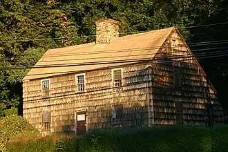 The Thomas Lyon House, at 1 Byram Road, was built ca. 1739[2] and is considered to be the oldest unaltered structure in Greenwich, Connecticut.[3] The restoration of the house, a Colonial saltbox, is the primary project of the Greenwich Preservation Trust, a not-for-profit organization that grew out of the Thomas Lyon House Committee formed by the Byram Neighborhood Association.[4] Its heritage dates back to the family of Thomas Lyon (1621–1690), one of the earliest settlers of Fairfield County, and particularly his son, Thomas Lyon (1673–1739) who, with his wife Abigail and their children, were the initial occupants. The house stayed in the family line of Abigail and Thomas Lyon in to the 20th century.