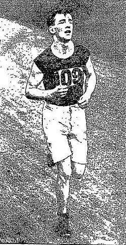 One month after his Brooklyn race, he entered the Boston Marathon for the third time. He was only in ninth place, passing through the five-mile point at South Framingham, but worked his way through the field until he passed the leader, Robert Fowler, two miles from the finish line. His time was 2:25:43.2, the second fastest time ever on the course at that time after Tom Longboat's record the previous year.[5]
