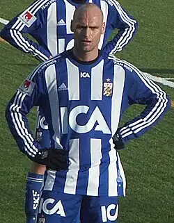 Thomas Lars Olof Olsson (born 15 February 1976) is a Swedish former professional footballer who played as a midfielder. His last professional club was IFK Göteborg.[1] After playing for the local club Åtvidabergs FF, he joined IFK Norrköping in 1998. In 2003, he joined Malmö FF with which he has won one Swedish championship. He moved on to IFK Göteborg before the 2006 season, and was a key player there during their gold season 2007. Olsson retired from professional football after the 2011 season.