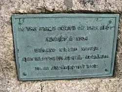 Rice was among the first to settle prior to 1675 in the southwestern portion of Marlborough known as Chauncey, the portion of Marlborough that later became Westborough.[3] Rice's home was a fortified garrison house that was used by area settlers for refuge from Indian raids during King Philip's War 1675-1676.[3] During Queen Anne's War in 1704, two of Rice's sons, Adonijah and Ashur, were abducted from a flax field in Marlborough by Mohawk raiders from Canada.[4] He was one of the founding members of the town on 18 November 1717, and one of the original members of the Congregational Church at Westborough begun by Ebenezer Parkman in 1724.[1] He represented the Town of Marlborough in the Great and General Court of Massachusetts, the colonial legislature in Boston in 1715 and 1716.[1][5] And he served as a selectman in Westborough in the years 1718 and 1727.[6] Thomas Rice died in 1747, with the Boston Gazette claiming he died at age 94.[7]