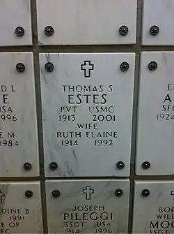 On December 29, 2001, Estes died of congestive heart failure in the Freedom Village Nursing Center in Bradenton, Manatee County, Florida. He was aged 88 years, 340 days. He is buried at the Arlington National Cemetery in Arlington, Virginia.[6]