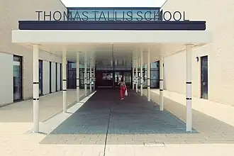 Thomas Tallis School is a large mixed comprehensive school for pupils aged 11–19, located in Kidbrooke in the Royal Borough of Greenwich, London, England. It opened in 1971, and was named after the composer Thomas Tallis, who lived in Greenwich.[1] The school was completely rebuilt 40 years later as part of the Building Schools for the Future programme. It now has 2,035 students.