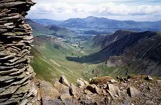 The copper mines at Keswick were at first a success.[5] The mines were located at Newlands in the parish of Crosthwaite in Allerdale.[6] Thurland, known as the Provost of the Mines, wrote to William Cecil, a shareholder,[7] about the successes, sending plans of the works and smelting house,[8] and mentioning that Daniel Hechstetter had to buy more timber to prop up the workings at Newlands because the seam was so large. Some of the timber was brought from Ireland.[9]