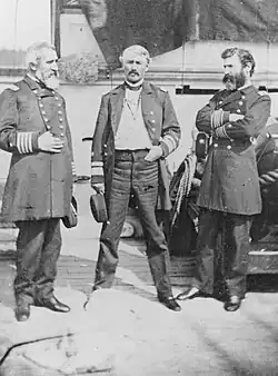 Though born and raised in Virginia and a first cousin once removed of Robert E. Lee,[5] Turner remained loyal to the Union during the Civil War. He was promoted to captain on 16 July 1862[3] and then to commodore on 13 December 1862.[4][6] Turner was given command of the armored frigate USS New Ironsides and commended by Rear Adm. Samuel F. Du Pont for his actions during the First Battle of Charleston Harbor in April 1863.[3][4] He was assigned to special duty at New York City in 1864 and then at Philadelphia in 1866.[3][7]