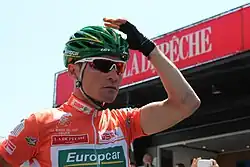 Thomas Voeckler (French pronunciation: [tɔmɑ vœklɛʁ]; born 22 June 1979) is a French former road racing cyclist, who competed professionally between 2001 and 2017, for the Direct Énergie team and its previous iterations.[2]
