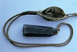 The Massey log consisted of a rotating metal screw which turned as the ship moved through the water.[5] The revolutions of the screw, or 'rotator' were registered on dials, which were part of the mechanism in the water. The purpose of the ship's log (or chip log) was to measure the distance travelled by a ship through the water, crucial information in maritime navigation.[6] An instrument capable of measuring distance accurately was vital, alongside a compass, a clock and maritime charts in the safe and accurate navigation of the seas.