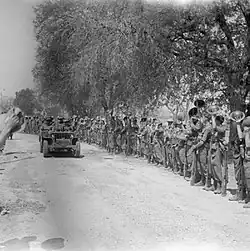 As head staff officer of the 4th Indian Infantry Division (GSO1), Rees organised the division's highly successful action during Operation Compass in the Western Desert in 1940.[2] The division then played a key role in defeating the Italian imperial forces in Eritrea during the East African Campaign during which time he was promoted to command Indian 10th Infantry brigade, part of Indian 5th Infantry Division which was fighting alongside 4th Indian Division. 10th Brigade played a leading role in the Battle of Keren, the decisive battle of the campaign.[18]