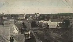 Thomasville was founded in 1888 and incorporated on November 24 of that year.[6] The former community of Choctaw Corner, dating back to the antebellum period, was a settlement west of what would become Thomasville, but when the merchants there learned that a railroad was going to bypass their town to the east, they decided to move their stores to be near the railroad.[7] The former community is now inside the city limits. The tracks between Mobile and Selma were completed the same year that Thomasville began. First referred to as "Choctaw", the town was named after railroad financier and former Union Civil War general, Samuel Russell Thomas, after he donated $500 for the construction of Thomasville's first school.[3] The town had expanded by the end of the 19th century with numerous stores, several hotels and boarding houses, and a depot station.[3] In 1899, what is now downtown was destroyed by a fire that burned several blocks of the wood frame buildings. Thomasville quickly rebuilt, this time in brick, and was once again flourishing by the start of World War I.[7]