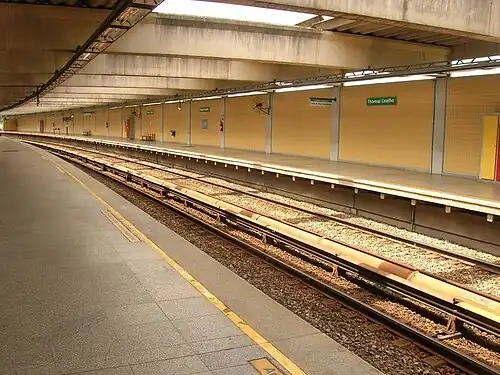 Thomaz Coelho Station (Portuguese: Estação Thomaz Coelho) is a subway station on the Rio de Janeiro Metro that services the Rio de Janeiro neighbourhood of Tomás Coelho.[1]