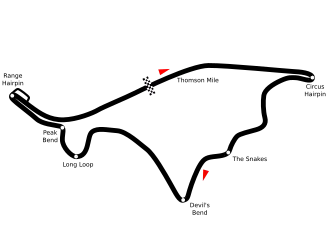 The Thomson Road Grand Prix circuit measures 4.865 km (3.023 mi) long per lap and runs in a clockwise direction.[5] The circuit starts with the "Thomson Mile", a mile-long stretch along Upper Thomson Road.[2] Halfway through this stretch of road, there was "The Hump", a right hand turn that caused drivers to lift off the ground if they sped past this bend.[2]