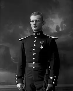 In 1903 he graduated from the upper section of the Norwegian Military Academy. The same year he became a first lieutenant in the Kristiansandske Brigade. In the years 1905 to 1907 he attended the Norwegian Military College, but left the school three months before graduation, citing personal reasons.[1] In his spare time, he held lectures on the subjects of defence, sports and shooting.[6]