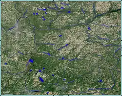 The Thornapple River (Ottawa: Sowanquesake, "Forked River")[4] (GNIS ID #1075813[5]) is an 88.1-mile-long (141.8 km)[6] tributary of Michigan's longest river, the Grand River. The Thornapple rises in Eaton County, Michigan and drains a primarily rural farming area in Central Michigan. It joins the Grand in Ada, Michigan, 10 miles (16 km) east of Grand Rapids.