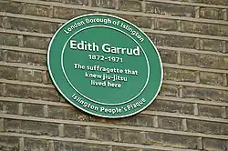 Edith Garrud (1872–1971), gave training in jujutsu and the use of Indian club to "the Bodyguard", a suffragette unit to protect Emmeline Pankhurst. She lived at 60 Thornhill Square, and is commemorated there with a plaque.[12]