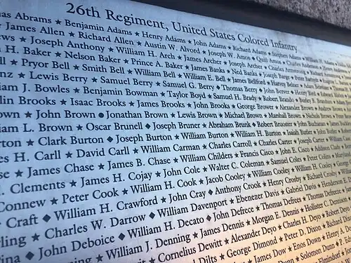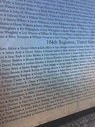 Gettysburg and Vicksburg's trenches,Names from the plaque on the African American Civil War Memorial of the 104th Regiment, USCI, James B. Chase on 10th line near left