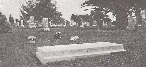 In 1945 Chase was mentioned in the Pittsburgh Courier, a noted African-American newspaper, but only his status as the first American Baháʼí and his gravesite visited by ʻAbdu'l-Bahá.[194] Hatch was visible in May again at an interracial meeting and a brief comment was also made of the memorial meeting in the Baháʼí News,[195] followed by a picture of the memorial published soon after.[196] A further scholarly work on Chase was published in August 1945 in the World Order magazine of the religion.[197] In it Scheffler mentioned he had known and traveled with Chase including his pilgrimage but "I had then practically no knowledge of his early life." Scheffler comments on small experiences of Chase mentioning his early life but nothing about the civil war service was mentioned – though he did understand Chase was a singer some time in his early life. Scheffler mentions Chase's deep abiding interest in religion and his finding Swedenborgianism. Scheffler speaks also of some correction of ʻAbdu'l-Bahá of Chase's thought at the time. The memorial was the lead mention in the summary of activities in Los Angeles in 1948 published in the Baháʼí News.[198] In October 1949 Hatch received a clarification to a question he had addressed Shoghi Effendi, then head of the religion; it was clarified that the gravesite could be called a shrine but that it was not important what to call it or if the memorial meeting is held Sep 30 or Oct 1 (since Chase had died after sunset and Baha'i calendars mark the change of day on the sunset.)[199] Memorial observances continued to be published in the Baháʼí News over the years and the responsibility of maintaining the event shifted from Los Angeles to the Inglewood community and with broadening attendance (for example in 1963 it was reported there were some 70 adults and 15 children from a range of communities and in 1965 there were 350 attending.)[200] In 1966 a tree was donated to a nearby park and has been the site of a social reception after the memorial.[201]