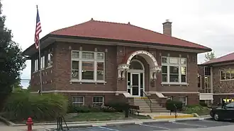 Thorntown Public Library is a historic Carnegie library located at Thorntown, Boone County, Indiana. It was built in 1914–1915, and is a one-story, three-bay, brown brick building with a red clay tile hipped roof. It has a round arched entrance and limestone trim. Its construction was funded with $10,000 from the Carnegie Corporation of New York.[2]: 2–3