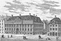 Originally known as the Juel Mansion, the house was built from 1683 to 1686 for the Danish naval officer Niels Juel. It was the second building which was completed on Kongens Nytorv which had been laid out by Christian V of Denmark in the years following his coronation in 1670 inspired by the royal squares of Paris.[1] Niels Juel's victory in the Battle of Køge Bay had won him fame and wealth. His new mansion was designed by Lambert van Haven as an L-shaped building in the Dutch Baroque style.[2]